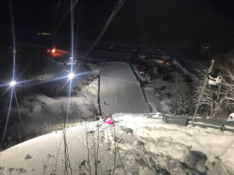 It is a small feat to get ski jumps ready to be skied and involves snow making, grooming landing hills, snowing and icing tracks, removing excess snow and on and on. That afternoon I have volunteered to remove snow from the 20 meter hill and sweep the track, which proved to be a bigger job than I first anticipated as there was about 4 inches of new snow with a crusty top layer. I most definitely would have sore arms the following day. At the end of the day, a small crew was put together to groom the landing by Rick Anderson, the chief of competition for the following day. I grabbed some packing skis and headed up to pack in some soft spots on the hill. I would also probably have sore legs the following day as well but it had been a good day at the ski jumps (it could have been a little better but there were two crashes that ended with one skier with a broken hip and sprained ankle and the other with a concussion).